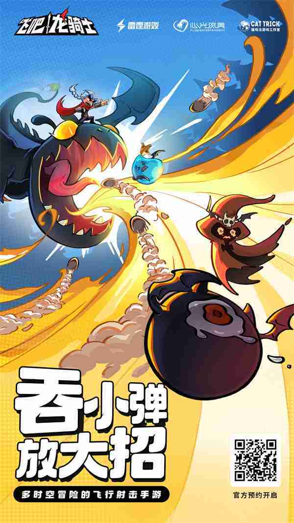 吞小弹,,放大招!!!多时空冒险的飞行射击休闲手游《飞吧龙骑士》官方预约现已开启。。。。现在预约还有丰厚的福利等你领!!!!大家可以关注《飞吧龙骑士》官方公众号,,,了解最新游戏进展。。
