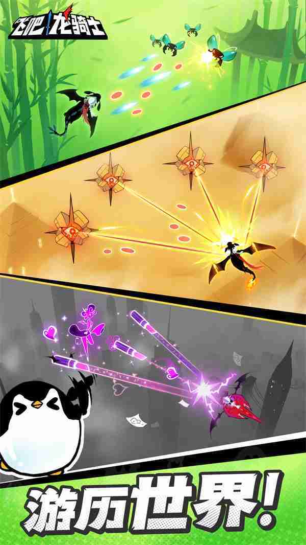 《飞吧龙骑士》是一款集合了飞行弹幕射击、、Roguelike要素和挂机养成的休闲手游,,,,极具创意的吞食子弹反击玩法,,,突破传统飞行射击的刻板限制,,,带来了独特的爽快清屏体验。。。。