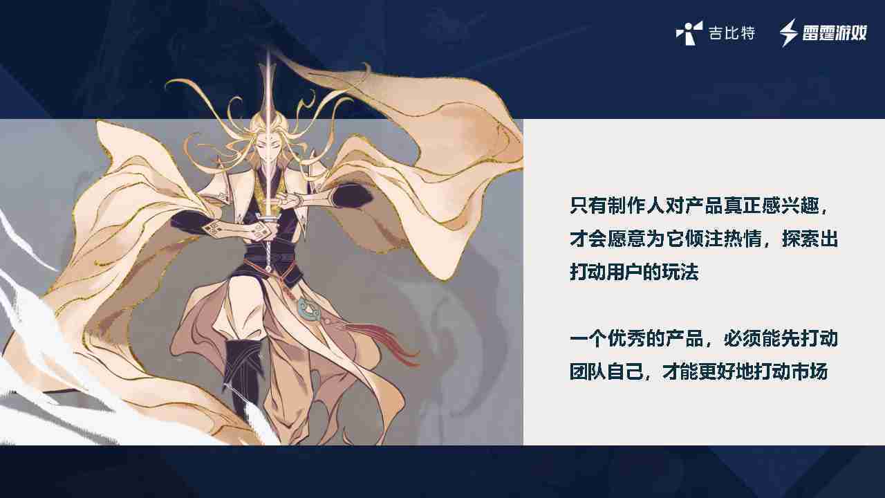 以《一念逍遥》为例,,,2018年公司创始人萌生想做修仙题材的放置游戏的想法,,,于是找了两位同事讨论了一下产品的概念,,这两位现在是项目的制作人,,,,花了三周的时间把原型做出来,,,,并且确定最初的战斗原型,,,以及整个养成的节奏。。通过几次版本迭代验证后,,也确定后面的内容应该怎么拓展,,,最终在一年左右时间这个项目上线了。。。当时我们内部有同事看到《⼀念逍遥》上线,,认为品质还不够完美,,,,但是整体营收还不错。。就在想那是不是以后我们都做这样的产品??但实际这是错误的认知,,我们内部不是这么看的。。。游戏在那个时间点上市,,,因为有些市场的考量和营销点的考虑,,,,并不是希望所有项目都是这样。。。如果它有更好的契机,,,,希望它可以做得更大、、、更好,,希望在内核玩法确定之后,,,,外围投入可以越大越好,,,,所以后面的几个项目是往这个思路上做。。