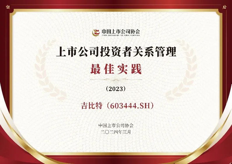 近日,,中国上市公司协会举办的2023年“上市公司投资者关系管理最佳实践”活动评选结果揭晓,,J9.COM荣获“投资者关系管理最佳实践”荣誉,,,,并被纳入最佳实践案例汇编。。。。